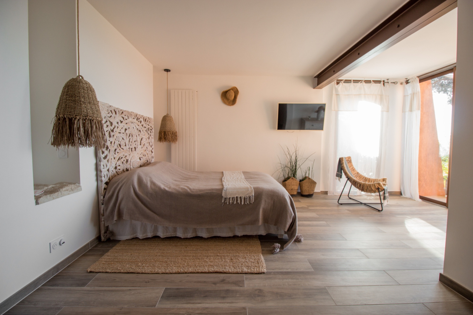 Trois suites élégantes avec salles de bains privatives toutes avec vue sur la mer, un bureau et des dépendances – dont un potentiel studio indépendant – complètent l’ensemble.