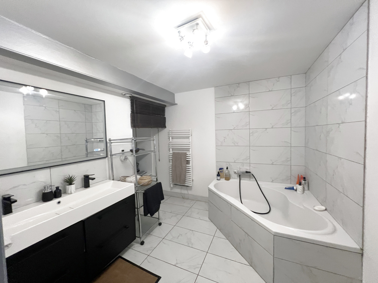 - Une salle de bain avec baignoire d'angle, ainsi qu’un WC séparé.