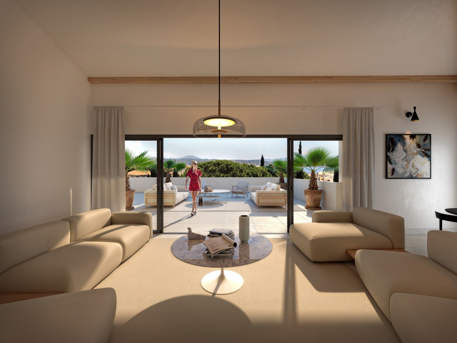 À l’extérieur, plus de 128 m² de terrasses prolongent les espaces de vie, avec vue dégagée et prestations haut de gamme dont une piscine privative.